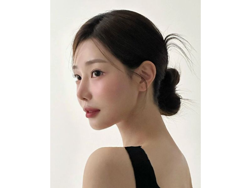 Tóc búi kiểu Hàn nổi bật với vẻ trẻ trung, đáng yêu và được nhiều người ưa chuộng trong các buổi tiệc cưới lãng mạn. Một lưu ý nhỏ với kiểu tóc này đó là bạn nên búi nhẹ nhàng, không quá chặt, buông vài lọn tóc nhẹ trước trán để vẻ ngoài trông dịu dàng và nữ tính hơn.