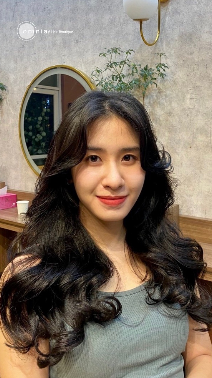 Tại Omnia, kỹ thuật viên sẽ kiểm tra chất tóc và tư vấn kiểu uốn phù hợp nhất. Với người thích tự nhiên, có thể chọn sóng lơi hoặc layer uốn bay. Với người muốn rõ nếp hơn, có thể chọn setting curl hoặc lọn to sang trọng.